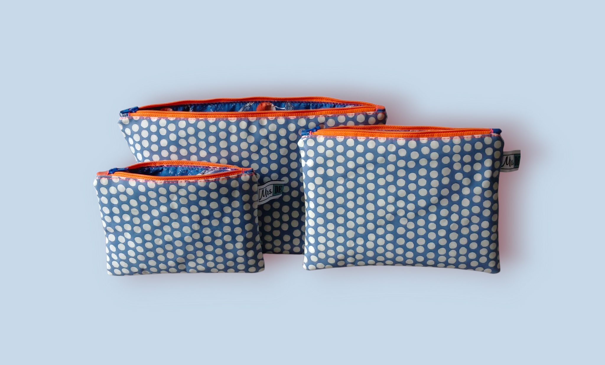 Of je nu deodorant, lippenstift of tampons bij de hand wilt hebben, alles blijft georganiseerd. Zelfs voor een tandenborstel tijdens een nachtje weg biedt het voldoende ruimte! De oranje YKK-rits met speelse kobaltblauwe runner maakt het geheel helemaal af.