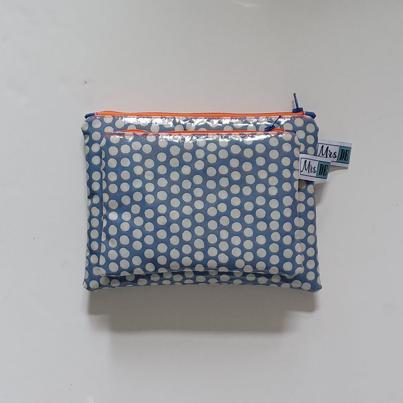 Wat een gezellig plat etui is dit weer. Het voelt glad aan, dit geplastificeerde katoen, en het glanst. Dat geeft het een luxe uitstraling. Dit Plat Etui Geplastificeerd Katoen Stip Blauw is een hele leuke variant van alle make-uptasjes en etuis die Mrsdejong maakt. Ze zou hem zelf wel willen kopen!