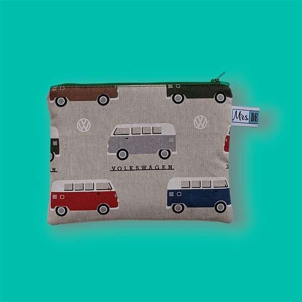 Dit tasje heet Plat Etui VOLKSWAGENBUSJE, en is heel leuk als etui voor jongens, waar je van alles in kunt doen. Natuurlijk pennen, maar ook autootjes, waar ze dan onderweg mee kunnen spelen. Of LEGO, het beste speelgoed van de wereld. Handig om zo’n etui mee te nemen als speeletui. Of als ze eens een keertje gaan logeren. Er past precies in de breedte een tandenborstel en een tube tandpasta in.