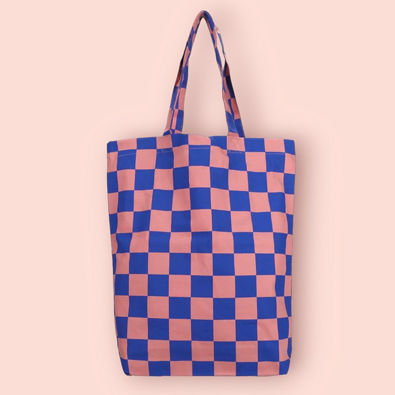 Productinfo Shopper Katoen Checkerboard Roze Kobaltblauw: