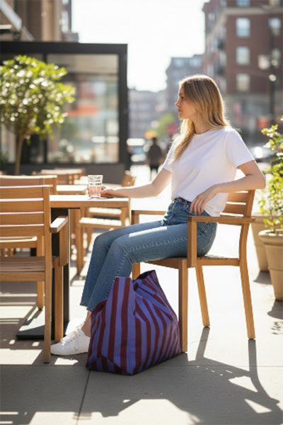 - Comfortabele schouderbanden in dezelfde streep van 4 cm breed, perfect voor over je schouder.