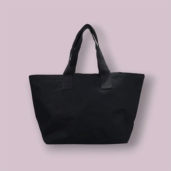 - De tas is vervaardigd uit dik katoenen canvas; stevig genoeg voor boodschappen, sportkleding of strandspullen.